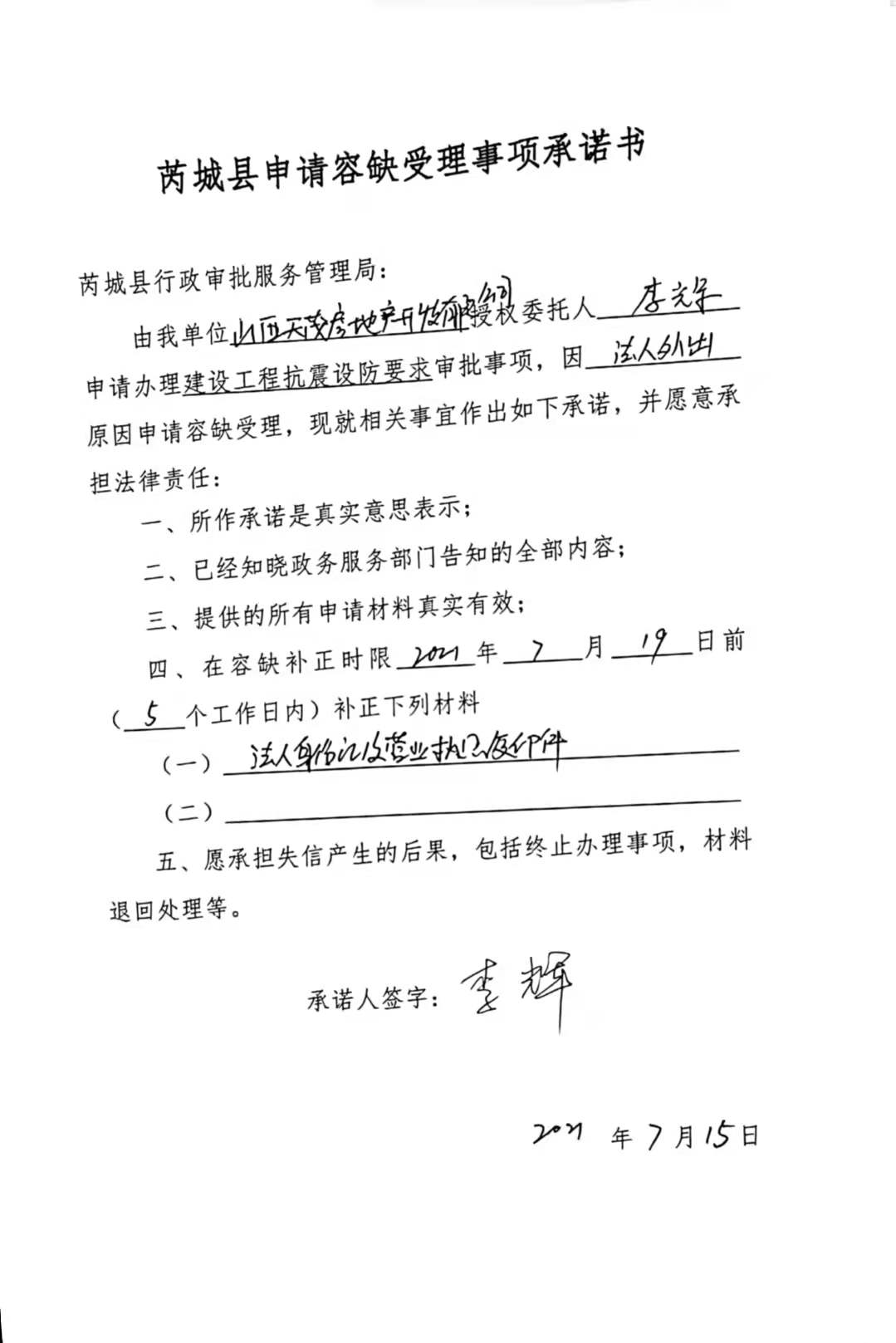 承诺主体代码:91140800798269745P 签署日期: 2021-07-15