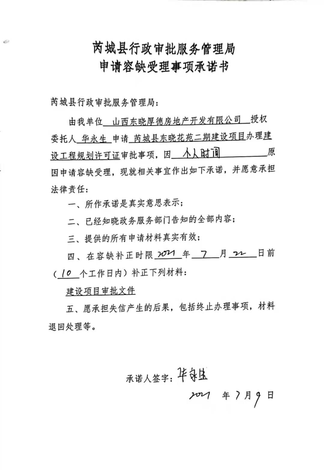 承诺主体代码:91140830MA0KJPH99X 签署日期: 2021-07-09