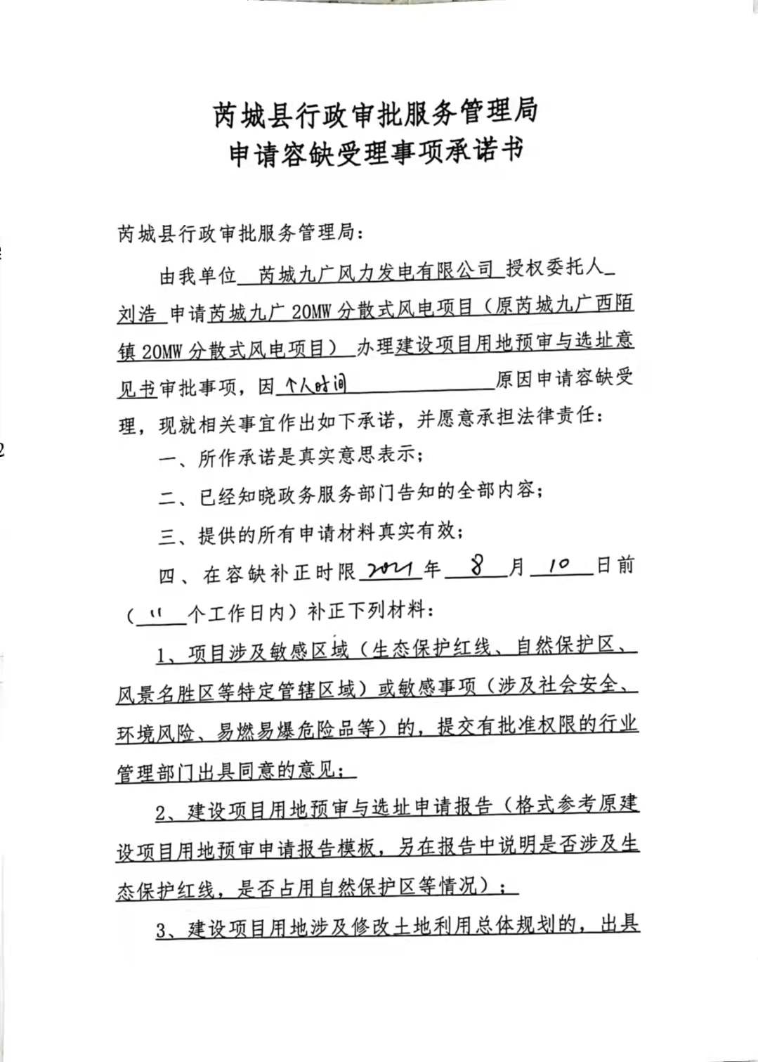 承诺主体代码:91140830MA0KD2A80T 签署日期: 2021-08-10