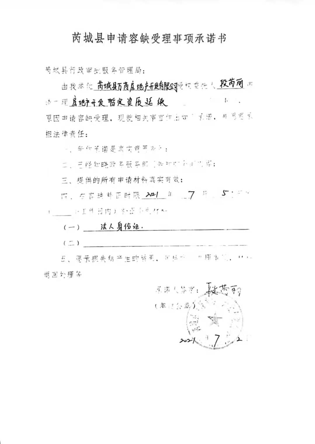 承诺主体代码:9112083MA0H1GR702 签署日期: 2021-07-02