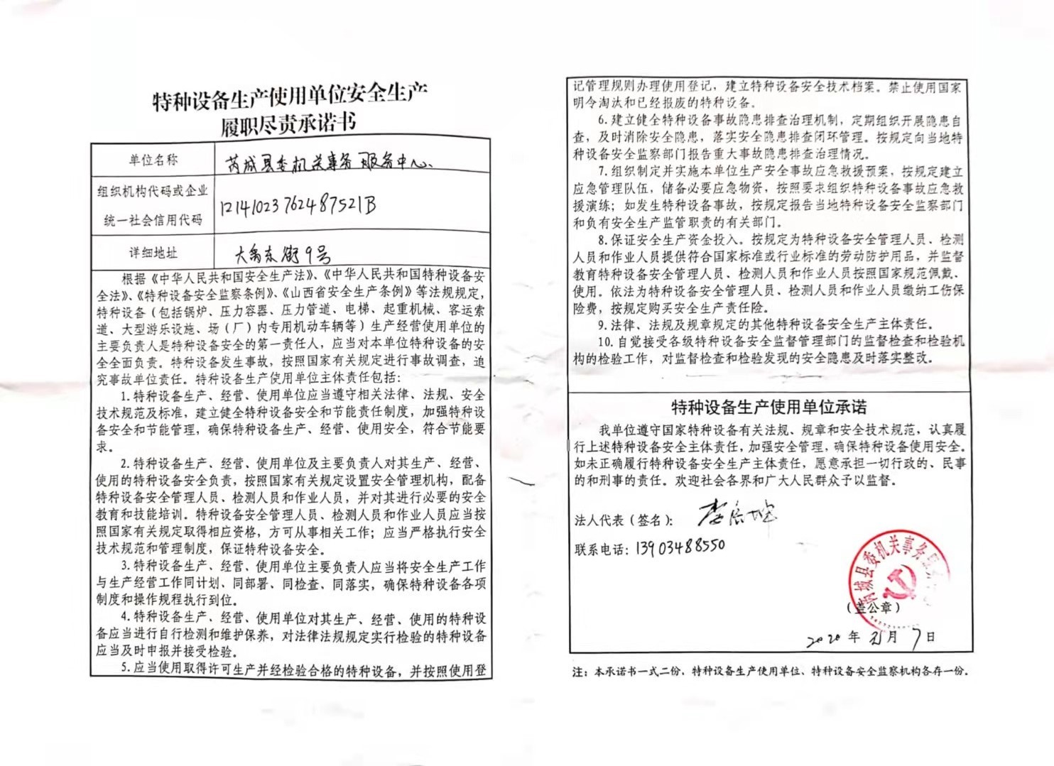 承诺主体代码:12141023762487521B 签署日期: 2020-12-07