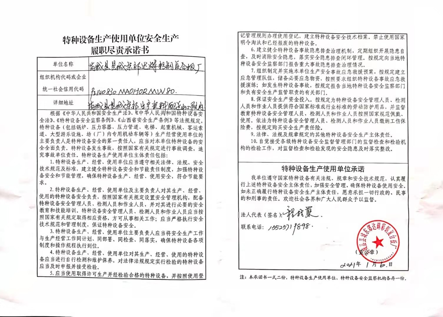 承诺主体代码:92140830MA0H0RMW80 签署日期: 2021-01-06