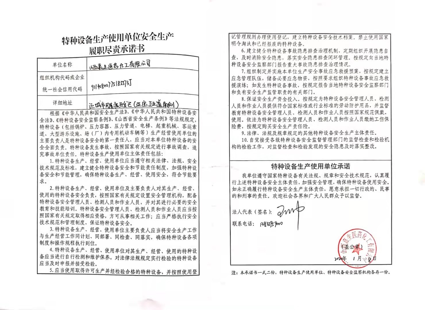 承诺主体代码:91140800775185573J 签署日期: 2021-01-08