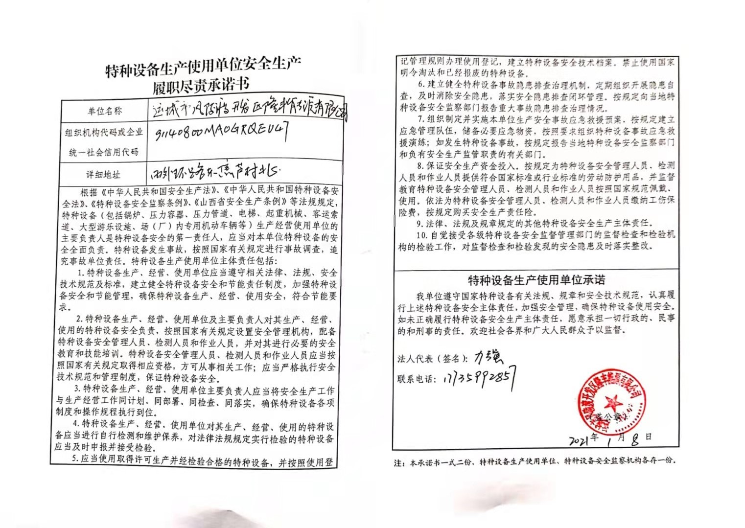 承诺主体代码:91140800MA0GRQEU47 签署日期: 2021-01-08