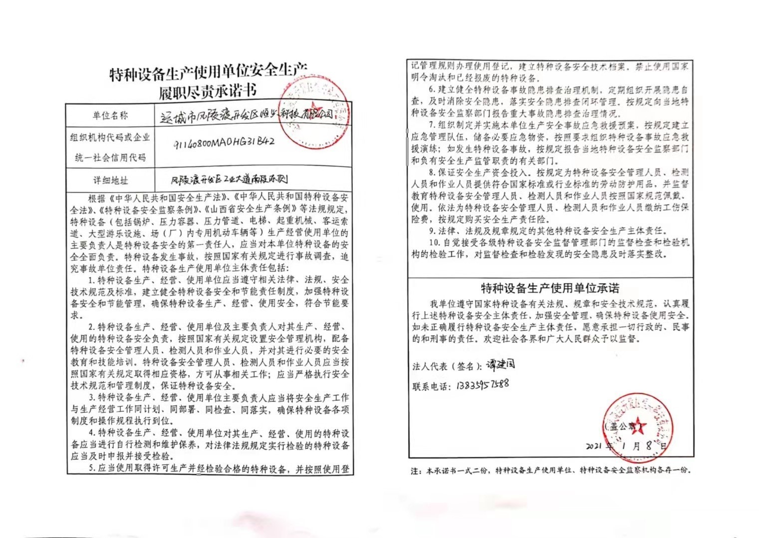 承诺主体代码:91140800MA0HG31B42 签署日期: 2021-01-08