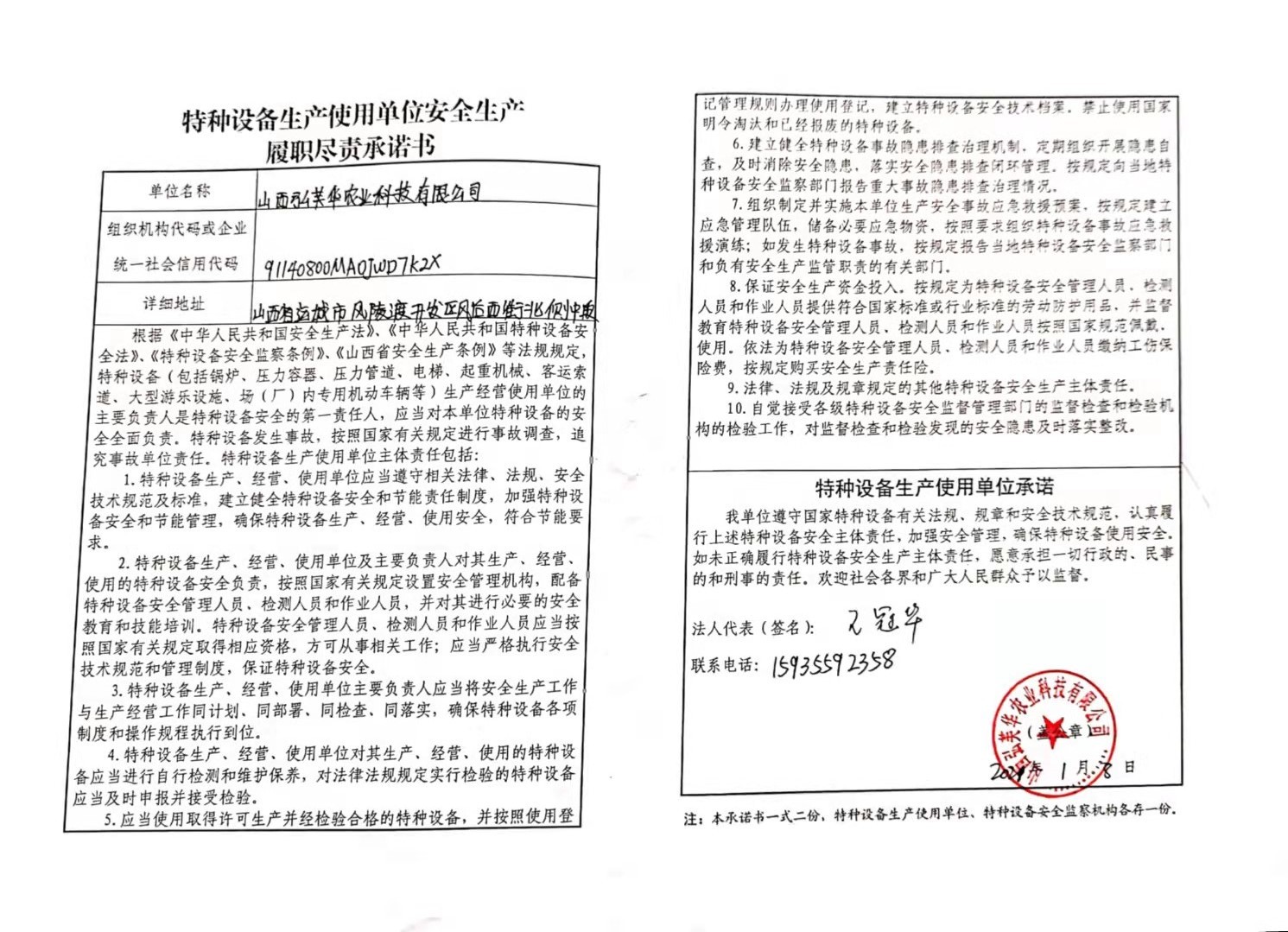 承诺主体代码:91140800MA0JWD7K2X 签署日期: 2021-01-08