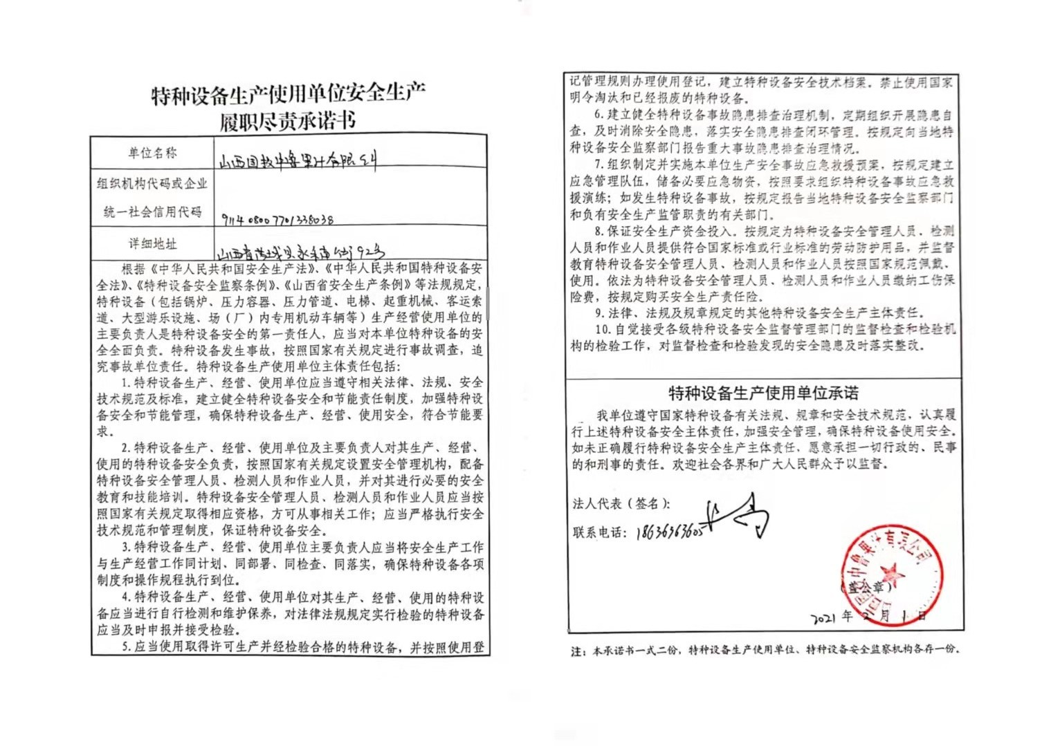 承诺主体代码:911408007701338038 签署日期: 2021-02-01