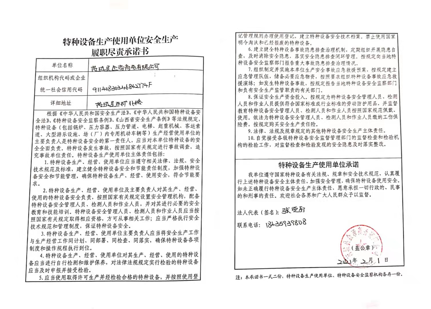 承诺主体代码:91140830346842774F 签署日期: 2021-02-01